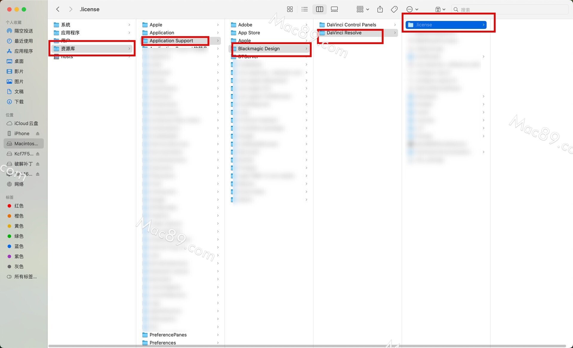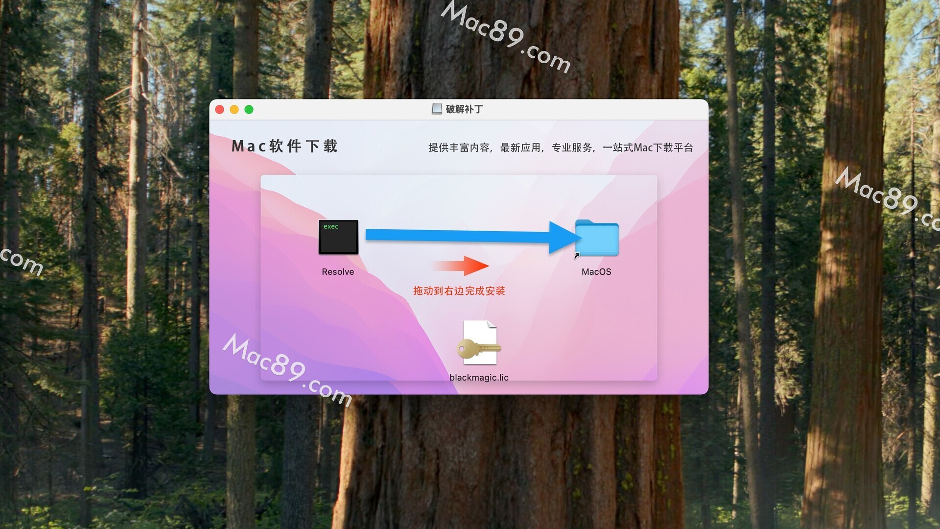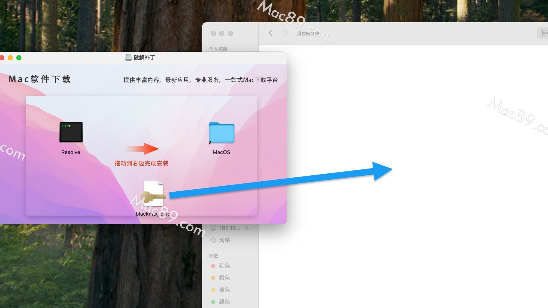 将补丁中的blackmagic.lic拖动到.license文件夹