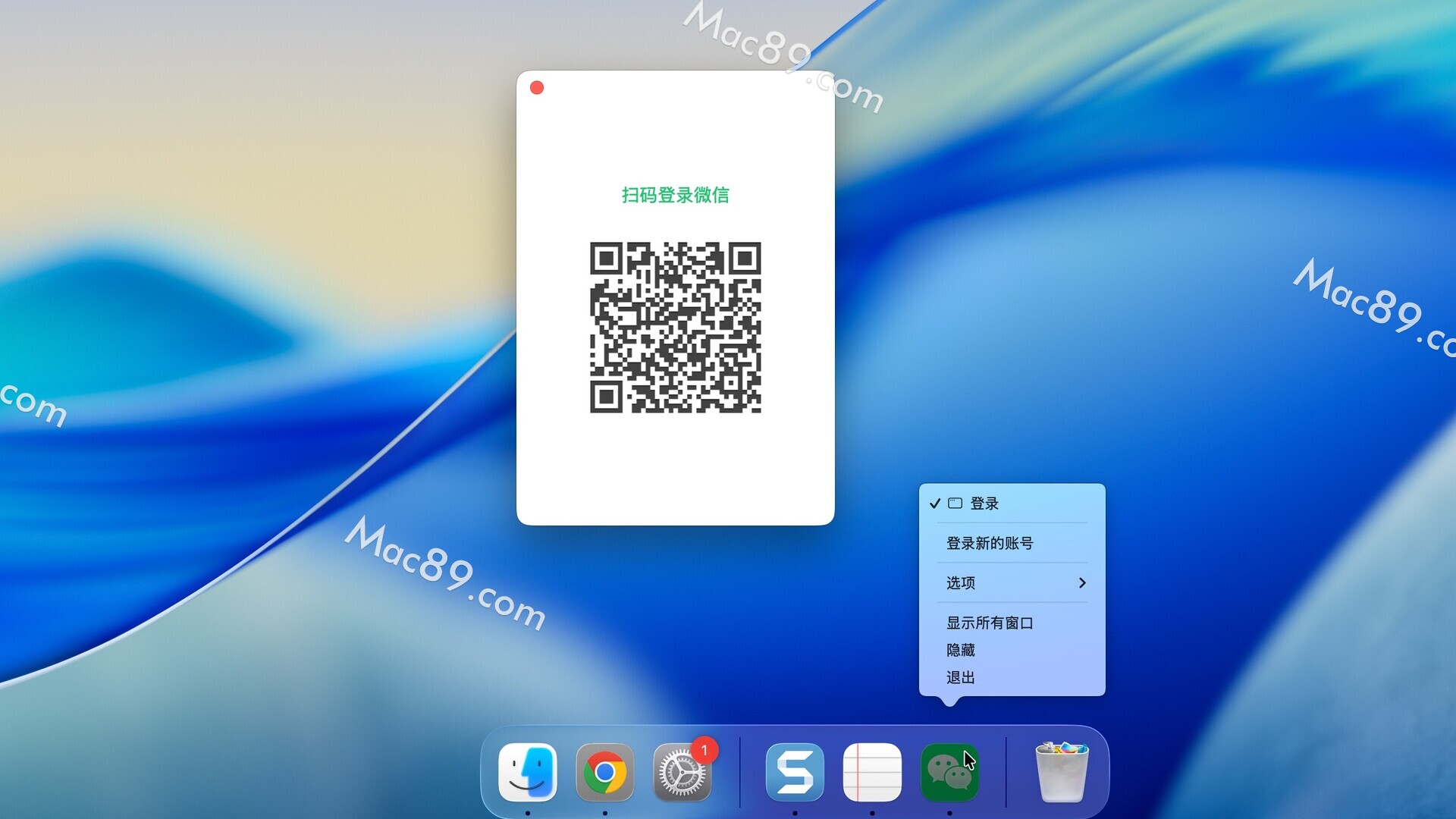 想要开启多个微信,右击程序坞中的微信,点击登录新的账号即可