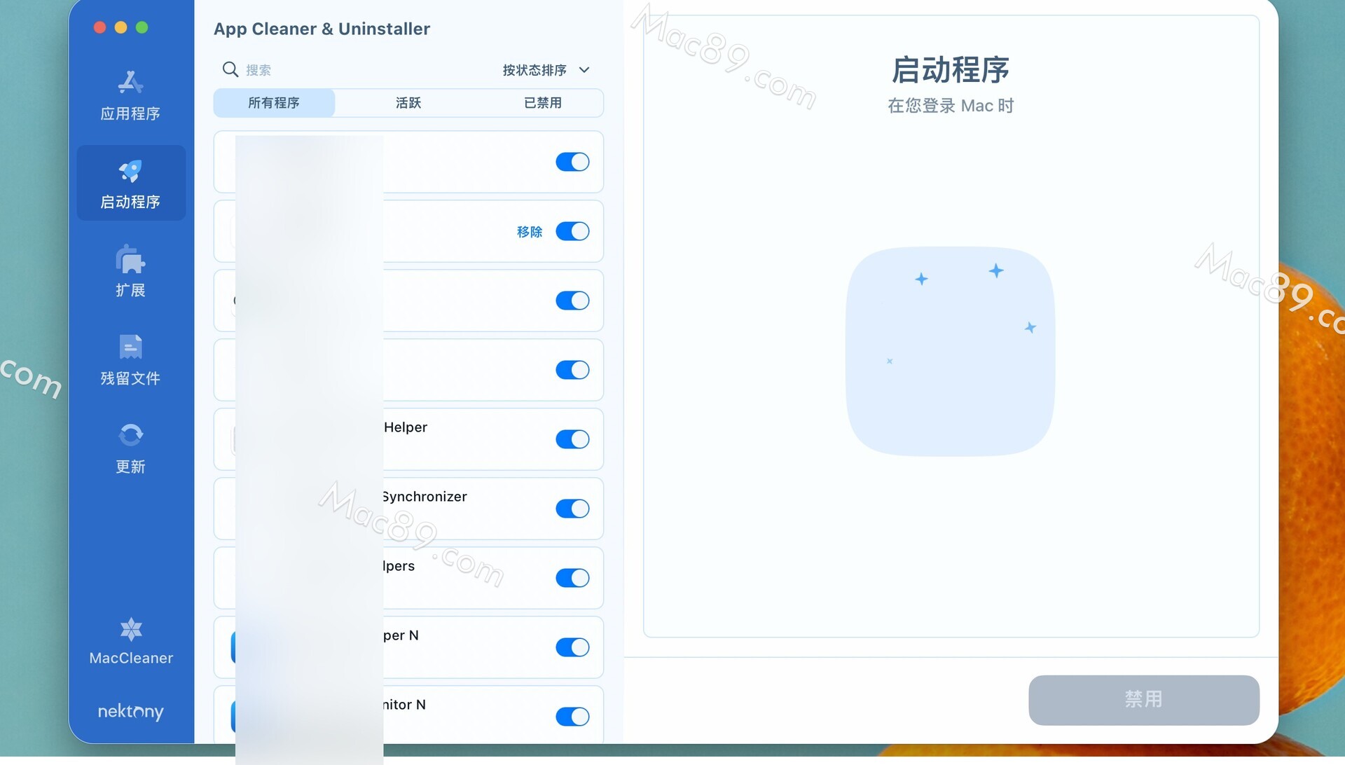 App Cleaner & Uninstaller 还提供了一些附加功能,例如管理启动项、浏览器扩展和插件。这允许用户禁用或删除不必要的项目,这些项目可能会减慢他们的 Mac 速度或导致问题。