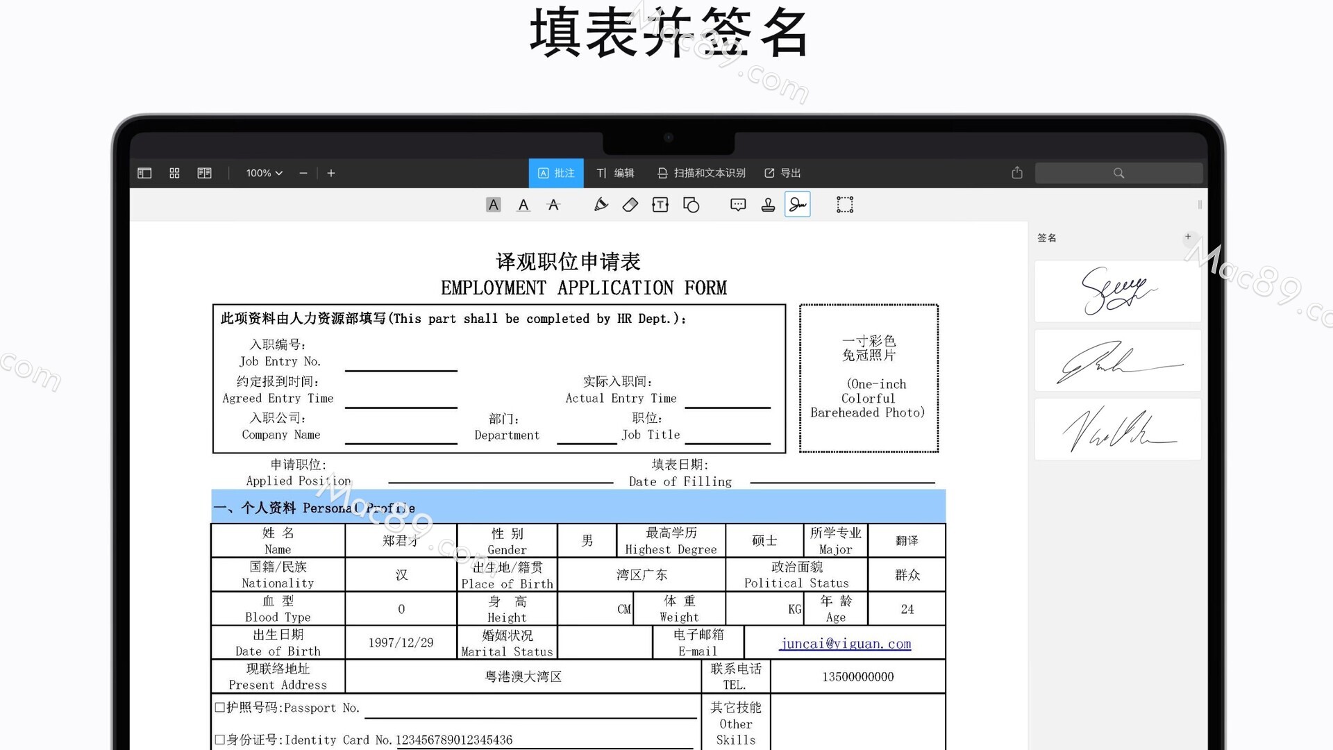 在Mac上,有3种直观,简单的模式可为PDF添加签名: