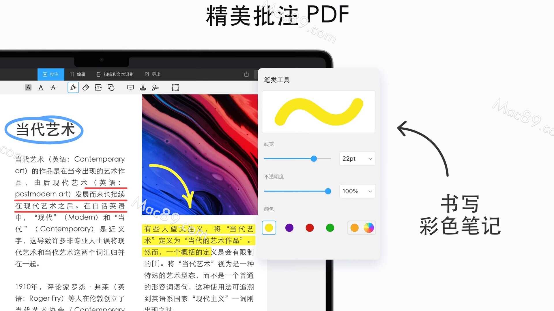 - 最先进的注释工具集让您轻松完成任何 PDF 任务。在会议或讲座中,您可以快速记下笔记或添加音频。在审阅文档时添加图章。使用独特的贴纸、荧光笔和精美的色彩,让您的文档脱颖而出。