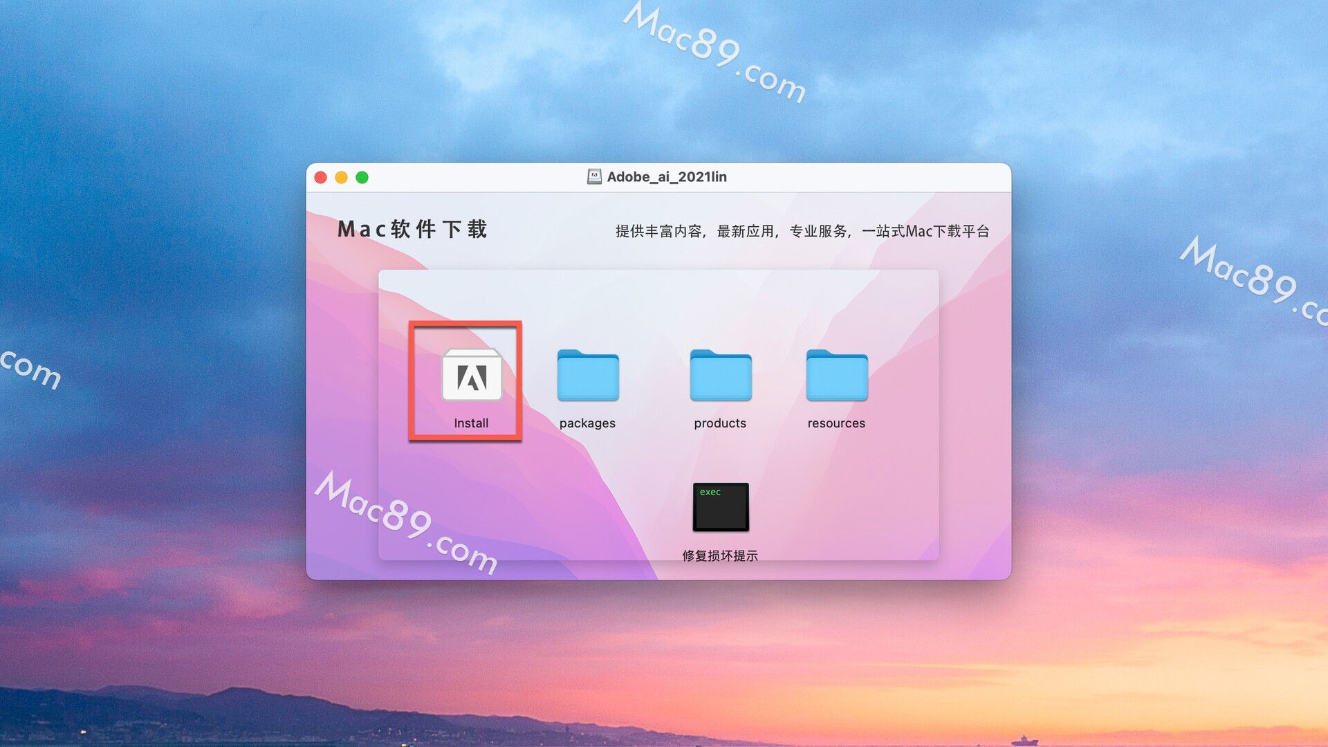 1.下载Adobe illustrator 20201 Mac 激活版,点击install